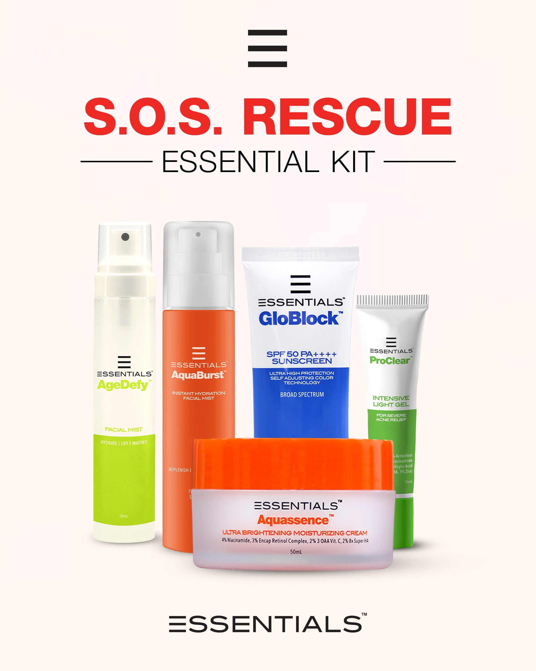 SOS + RESCUE: Address immediate skincare concerns with hydrating mists, age-defying solutions, sun protection, moisturizers, and spot acne treatment.